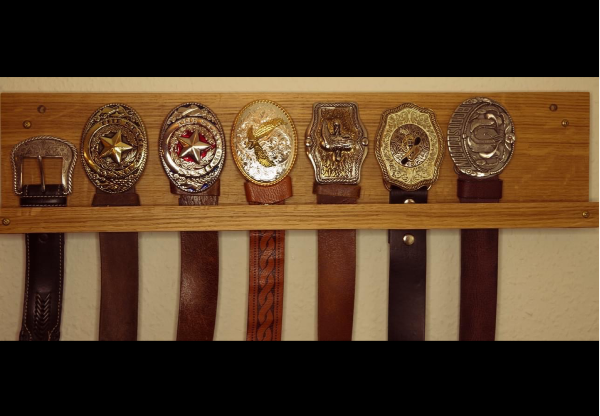 Bælteknag i egetræ - plads til 7 bælter efter kundens bestilling!
